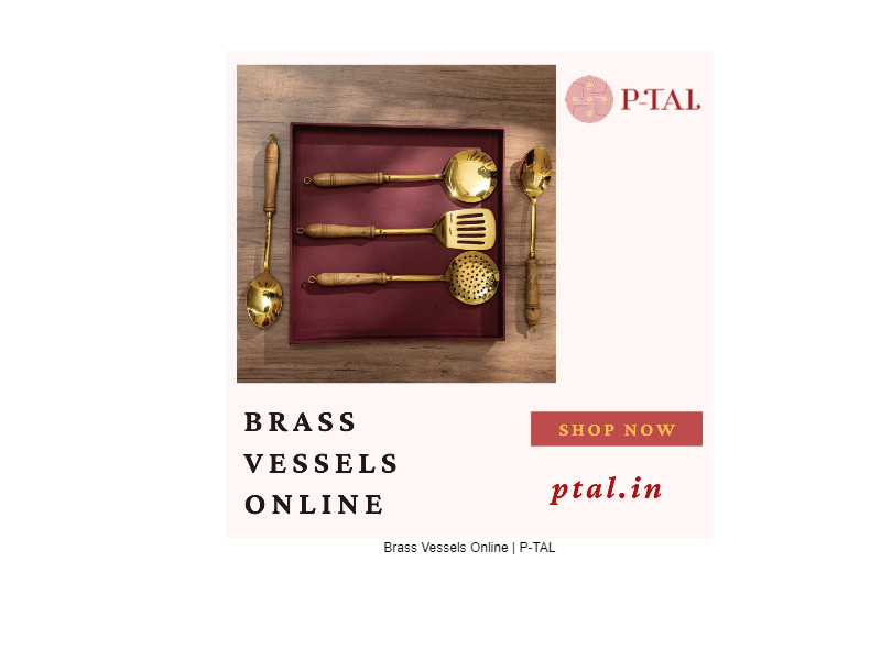 At P-tal, we offer brass vessels online that come with a multitude of health benefits. Brass vessels contribute to improved immunity and overall strength, enhancing the taste and aroma of your food. Our selection includes brass tea cups fitted with borosil, flat-base brass kadhais, brass ladles, brass spice boxes, and more. Brass is a long-lasting material that helps cool down the body and improve digestion. We take pride in creating vessels with an antique design infused with a modern touch. If you're searching for pure brass vessels online, you can find them at P-TAL