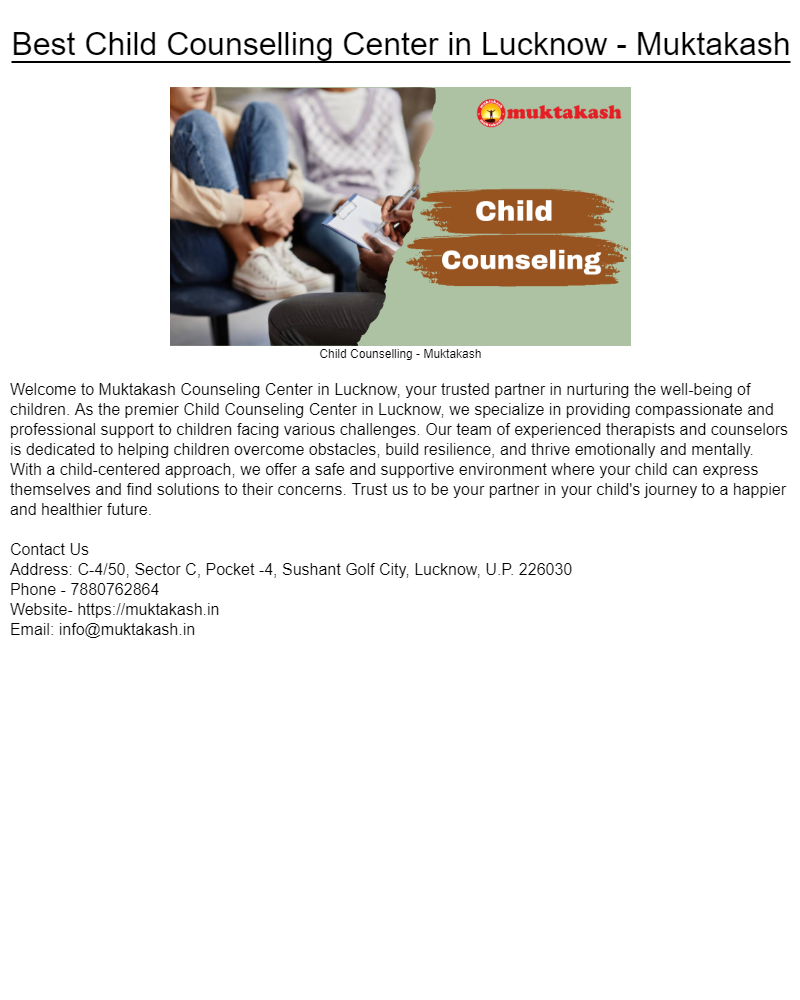 Best Child Counselling Center in Lucknow - Muktakash