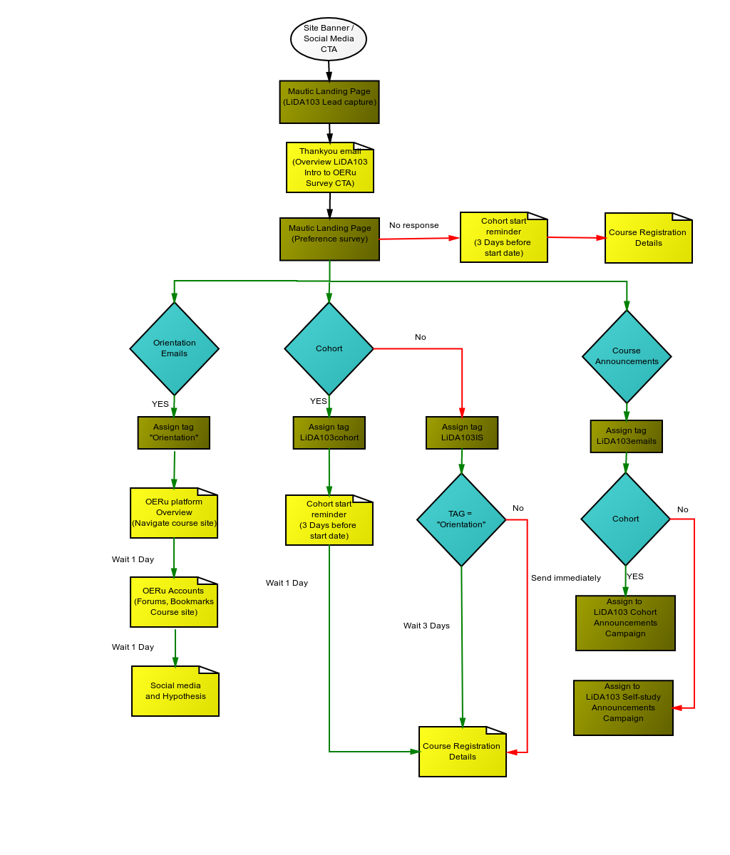 Flow chart showing LIDA103 lead capture and drip email campaign.