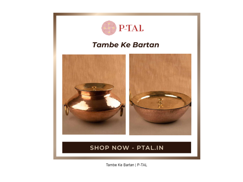 Explore the beauty and functionality of Tambe Ke Bartan (Copper Utensils) at P-TAL. Immerse yourself in the traditional craftsmanship and health benefits of copper as you peruse our carefully curated collection. From gleaming pots to intricately designed utensils, each piece reflects the timeless allure of tambe ke bartan. Beyond their aesthetic charm, these copper utensils offer antibacterial properties and the ability to enhance the flavors of your culinary creations. Transform your kitchen into a haven of elegance and well-being with our Tambe Ke Bartan collection, where tradition and utility harmoniously converge. Discover the unique blend of heritage and sophistication that these copper utensils bring to your daily culinary experiences.