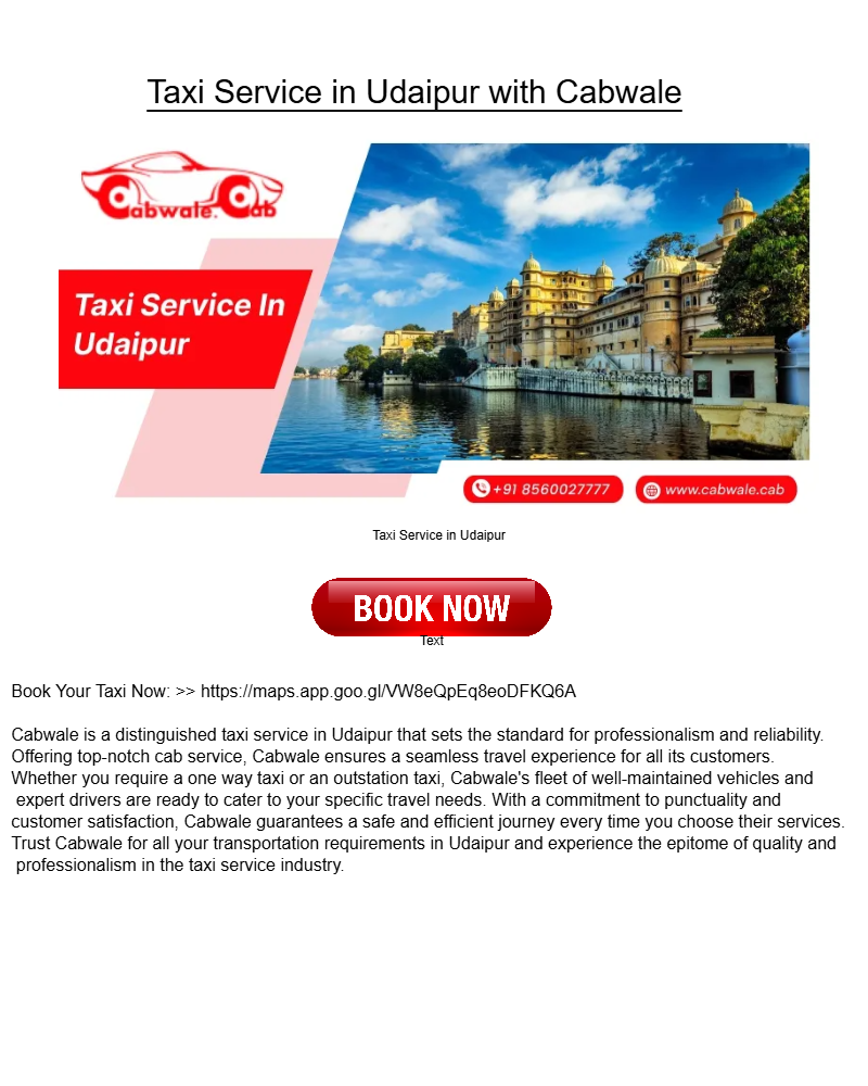 Cabwale is a leading Taxi Service in Udaipur that offers top-notch cab services including one-way taxis and outstation taxis.